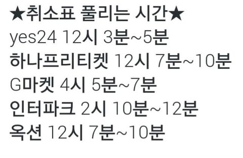 취켓팅 풀리는 시간 티켓사별로 나열