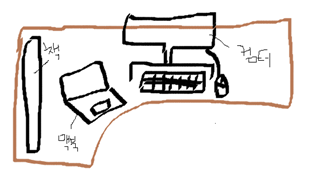 김대리의 책상구조임 출근하면 일단 맥북부터 켬 그리고 컴터를 켬