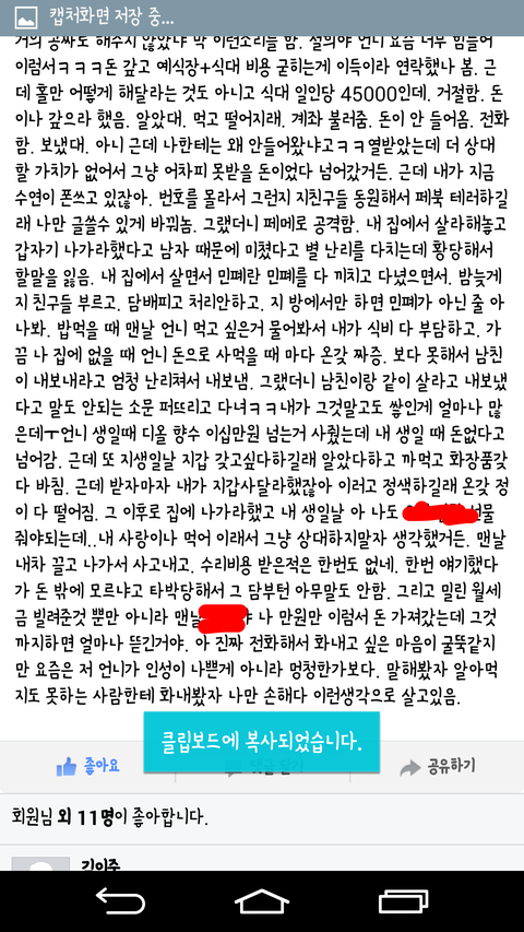 인터넷 상이라 자세한 이야기를 할 수가 없어 오해가 생긴 것 같습니다. 그리고 신상에 관한 정보는 안 올라왔으면 좋겠습니다. 익명의 힘을빌려 글을 쓰는건데 신상이 공개된다면 원래의 취지와 어긋나지 않겠습니까. 어쨌든 많은 답변 감사드립니다.