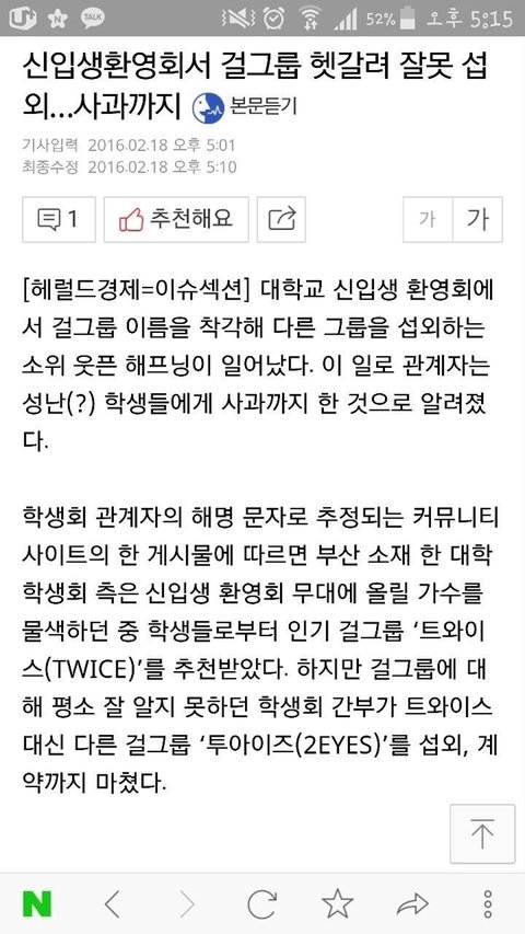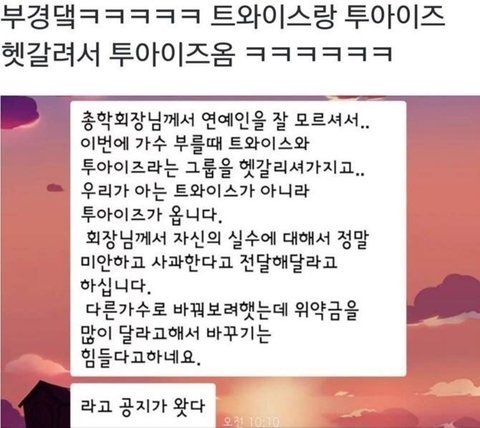 총학생회장이 아이돌을 잘 몰라서 투아이즈를 섭외함.
