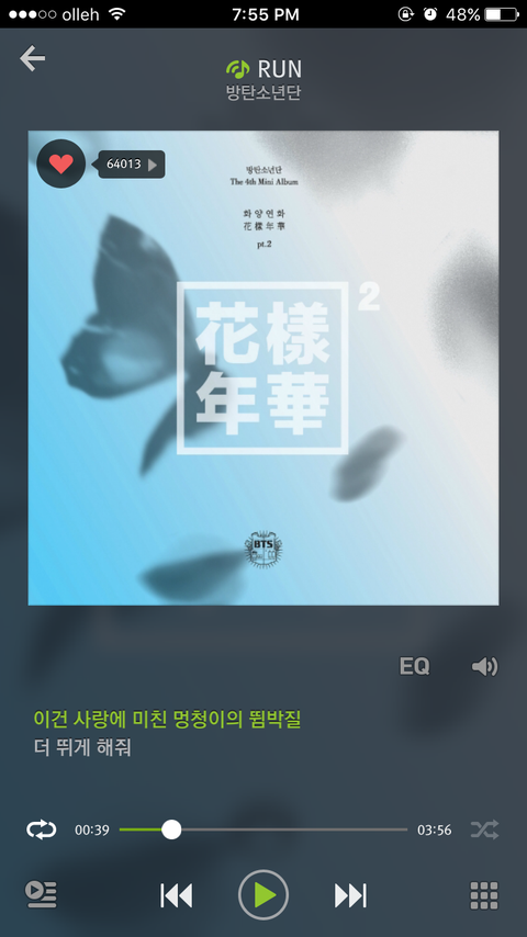 이삐들 스밍많이돌리자ㅠ많이돌려도 가수한테 가는돈은 얼마안가