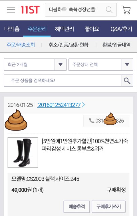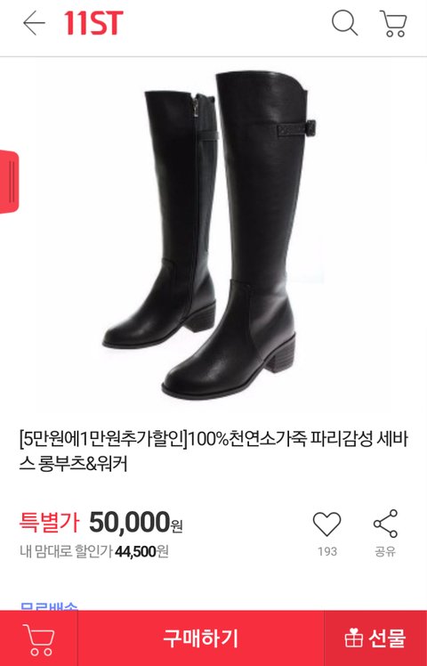 11번가에서 여동생이 소가죽부츠를 샀는데