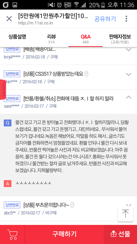 진짜 나는 온라인에 가지각색의 판매자들이 있는건 알았지만 이렇게 개념없는 판매자는 처음.