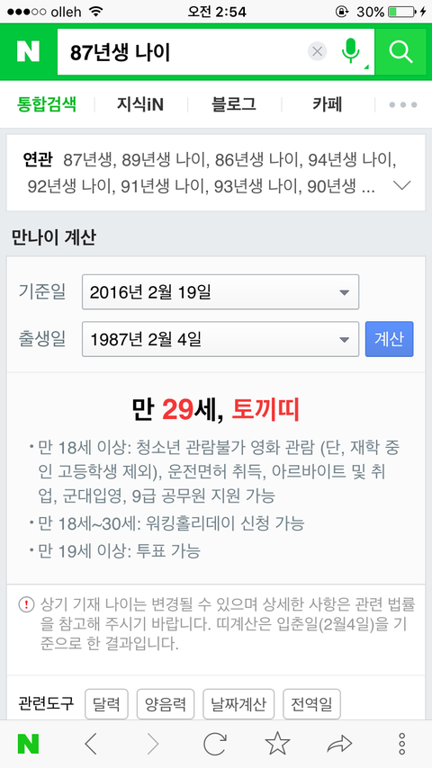 그때 나이가 87년생 으로 나옴