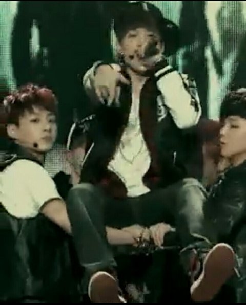 그리고 그위에 윤기가 뒤로 점프하는 그 안무