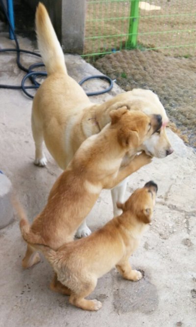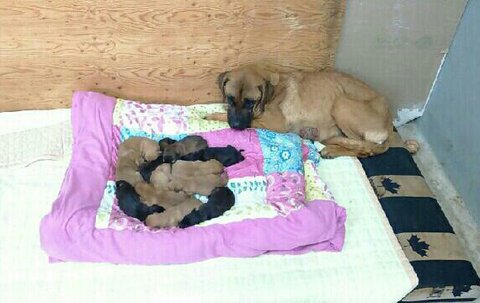 개농장에서 구조한 아이들중 어미 축복이와 그의새끼들입니다.