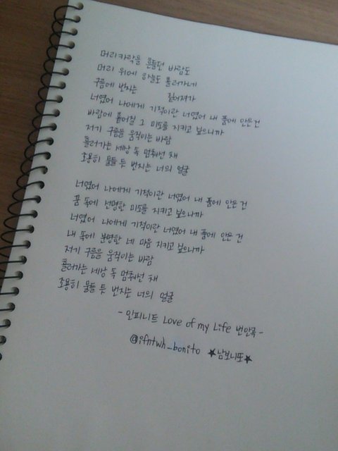 가사가 진짜 때묻지 않았다고 해야하나? 깨끗하고 명수 목소리 떠오르면서 괜히 노래 멜로디가 떠오르고 뭔가 이유모를 감성이 차오른다고해야할까... 럽옵라 한국어 가사로 알고 들으면 되게 슬프고 좋을것같다고 했던 어떤 쓰니의 말에 공감된다 ㅠㅠ... 그와중에 나 짹에서 전체녹음본 줍줍함...ㅎㅎㅎ v