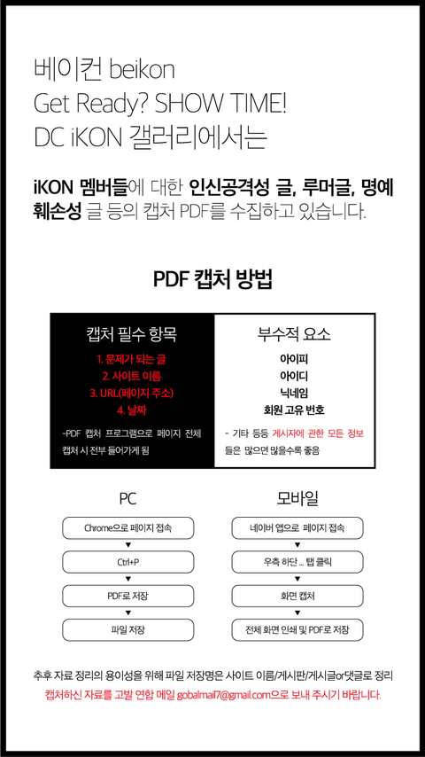 아이코닉들 세커뮤 연합해서 고소진행한다니까 지금까지 피디엪딴거랑 지금부터 따는거랑 모조리 여기로 보내줘 여기서 사과는 받았어도 짹에서는 우리 까는 인간 수두룩하고 무개념들 고소는 제대로 해야할것같아서 여기에다가도 올려
