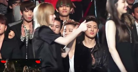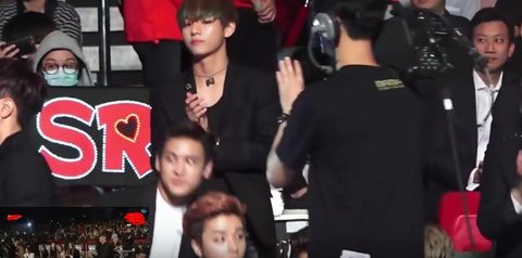 그리고 가요대제전 할 때 레드벨벳이 아이스크림케이크 출 때 방탄 리액션 팬캠이 있는데 이걸 보면 뷔가 계속 무표정으로 보고 있다가 댄스 브레이크때 웬디가 앞에 (센터에서) 춤을 출 때 그때 잠깐 웃었음