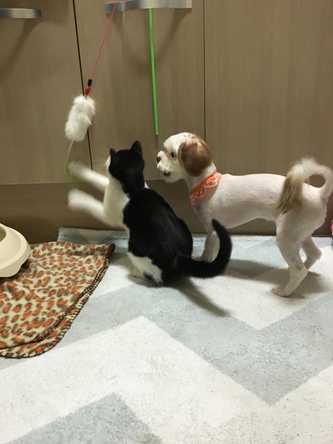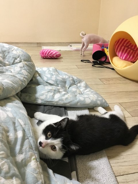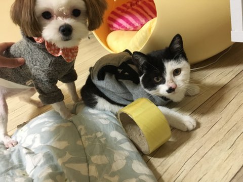 판에서 좋은 입양자분을 구햇엇는대 남편이 강아지도 혼자잇어 외로워하고 얌전하니 마음을 돌려주어 키워보자 하더라구요!!그래서 입양자분에게는 죄송한대 ㅜ저희가 키워보겟다구 햇어요 ㅠㅠ여건이 많이 안되지만 열심히 키워보려구요 저는 계속 키우고 싶엇는대 강아지랑도 이제 제법 잘 놀구요 같이 안고도 잔다는..보내기 아쉬웟는대 너무 기분좋아여 ^^ 이제 캣타워 스크레쳐? 랑 화장실이랑 다 바꾸고 사려구요 고양이에대해 많이 알려주세요 ㅜㅜ