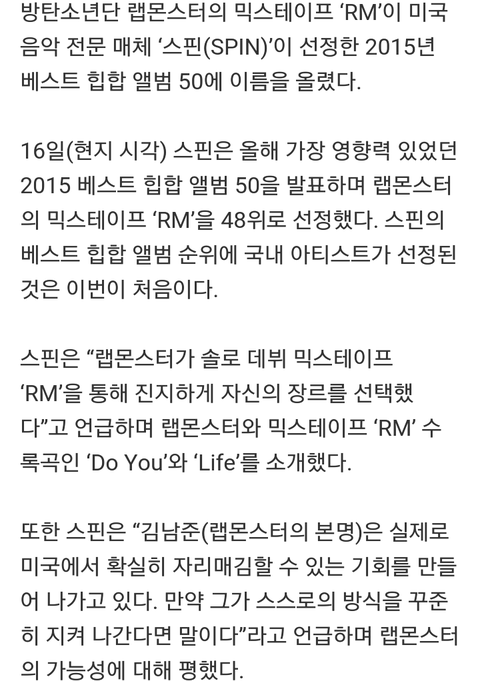 이거 기사 떴을 때 진짜 울 뻔 했음ㅋㅋㅋㅋㅋㅋㅋㅋㅋㅋㅋㅋㅋ김남준 참 대단한 사람이야...믹테 들으러 가야지 후흐후후훟ㅎ