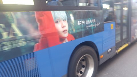 오늘 ㅠㅠㅠㅠㅠㅠ같은 지역이긴해도 저버스보려면 지하철 2번갈아타구 버스타구 이래야되는데 하... 오늘 갔다왔어 ㅠㅠㅠㅠ 버스가한대뿐이야 윤기붙은게 그래서 앱으로 그버스 위치보면서 지하철 역에내리자마자 계단 미친듯이뛰오서 정류장 도착했다??? 도착하자마자 윤기버스 출발하려고하길래 헒ㅁㅁㅁㅁㅁ하면서 사람들쳐다보는데 사진찍고 감상하고왔어.... 윤기너무이쁘더라 ㅠㅠㅠㅠ
