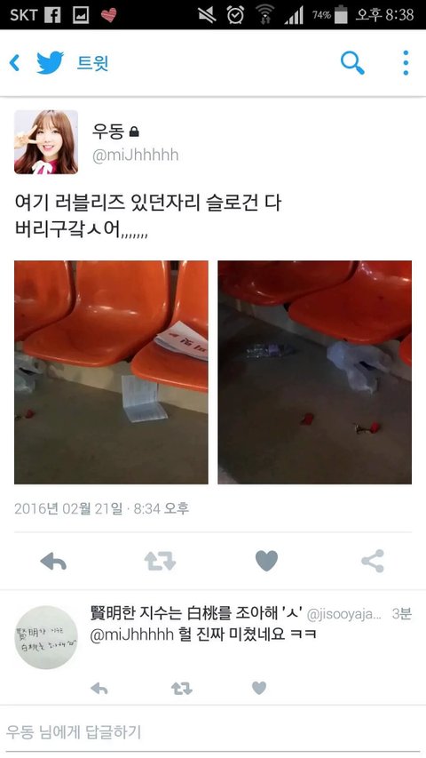 사진만봐서는 확인불능 주작이든 아니든 음식물들고있는 사진은 팩트니까 사과는 해야된다고 본다. 남도 아닌 소속선배그룹 컨에 규칙을 어긴거니까. 하여튼 똘똘뭉쳐서 상황대처 잘하자