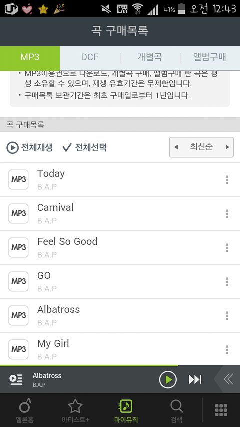 다 다운받고 MP3들어가서 삭제했는데