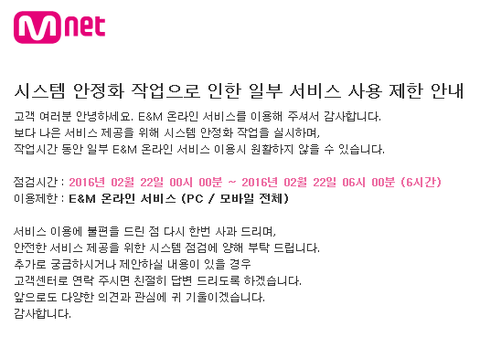 엠넷 챠트는 보려고 들어가니까 점검중이라고 뜨네