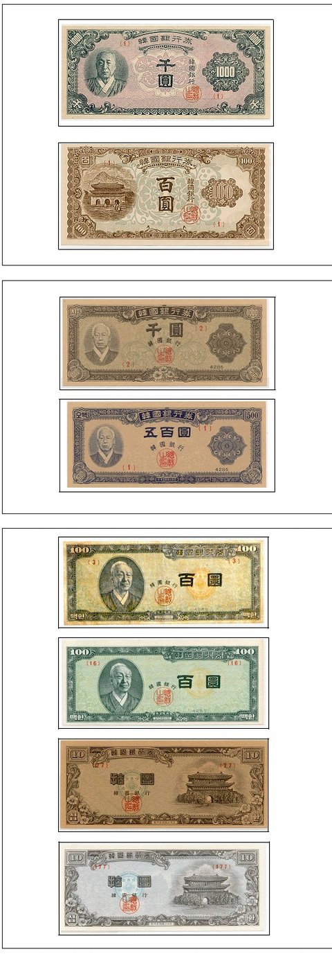 1950년대 대한민국 화폐의 인물