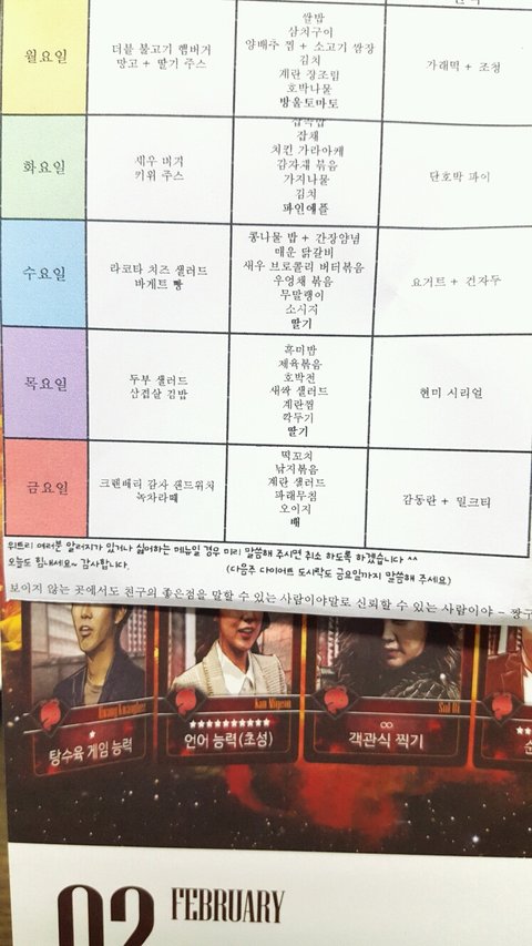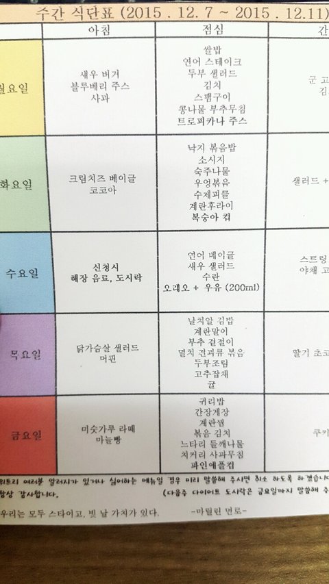보통 화~수요일 정도에 식단을 프린트 해서 넣어주세요
