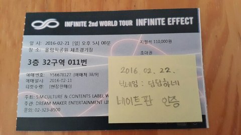 러블리즈가 들어온 4시 40분부터 앵콜 전 공연 막바지에 러블리즈가 나가기 전까지 봤는데 인피니트를 보고 즐기러 콘서트에 온 팬으로서 기분이 좋지많은 않았어