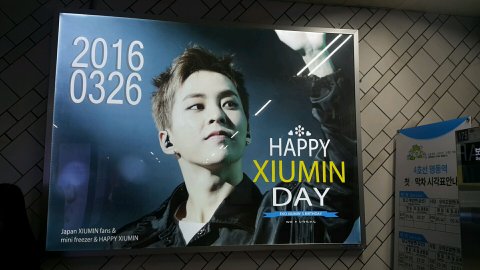 시우민 벌써 명동에 생일광고!