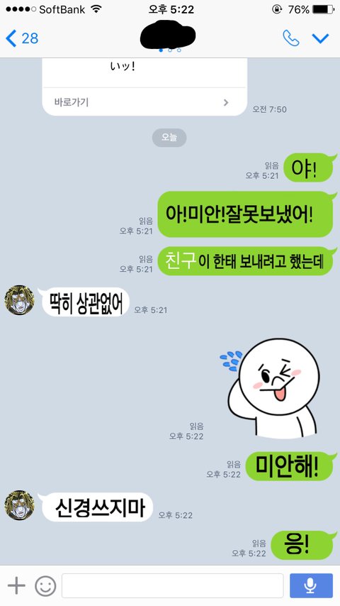 나랑 처음 라인 교환했을때