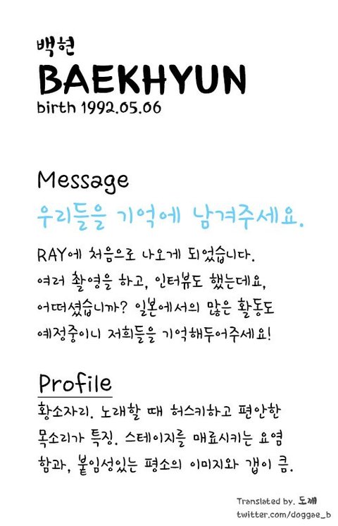 백현이 RAY 프로필 ㅋㅋ