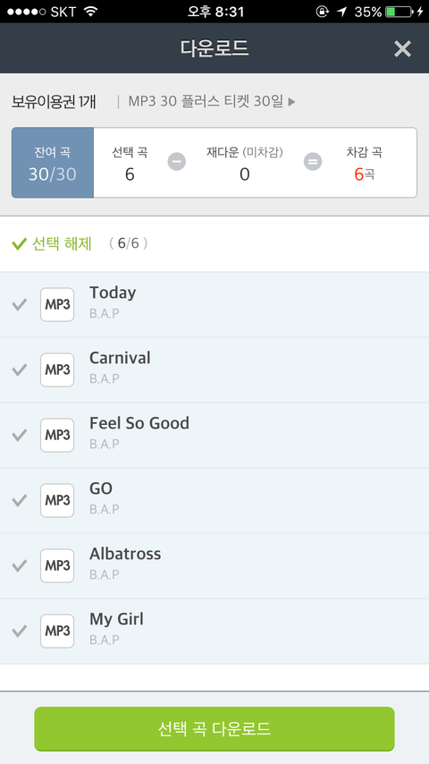그냥 투데이부터 이렇게 여섯대노래 차례대로들음되는건가?카니발노래개좋다