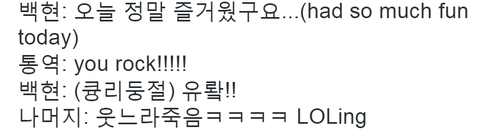 백현: 오늘 정말 즐거웠구요 통역: you rock!!!!!