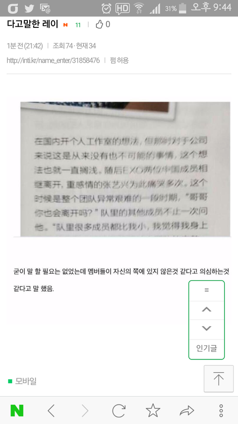 엑소실물보고다음날 기억조작한느낌듦