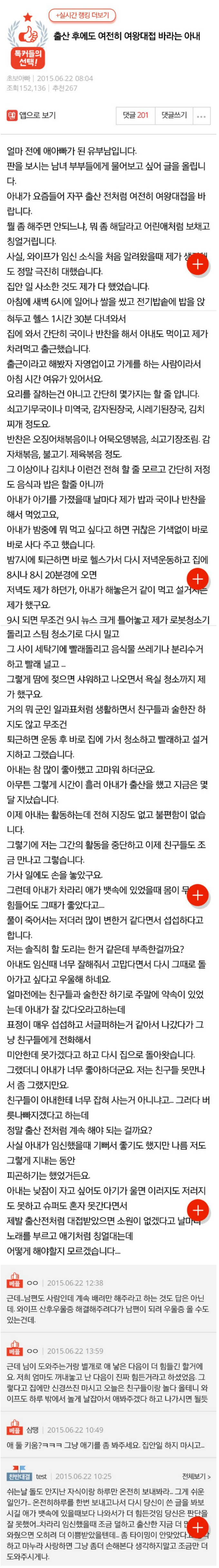 출산 후에도 여왕 대접 바라는 아내