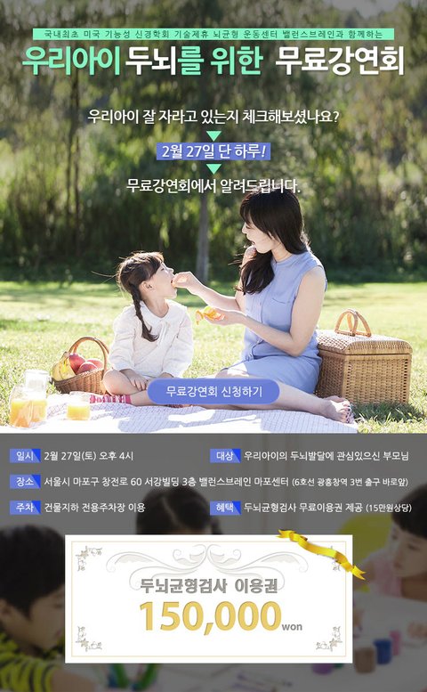 두뇌가 불균형으로 발달된다면,학습장애, 발달장애를 초래합니다!!!!!!잘 자라고 있는지 확인이 필요한 이 시점에관심있는 맘들만 신청해봐요^^