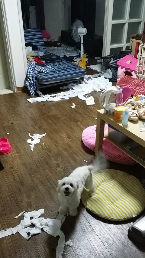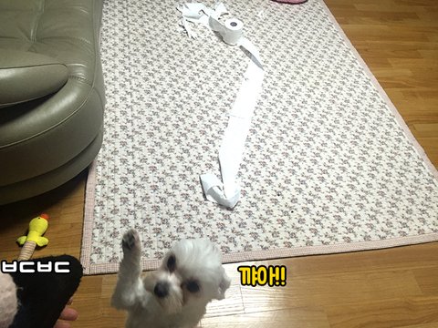 휴지뜯던 흥이 아직 가라앉지않은채 퇴근한 저를 반기는