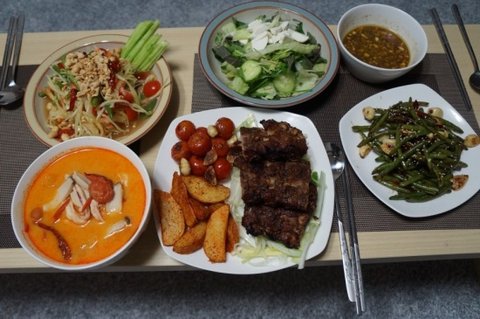 쏨땀 / 샐러드 / 똠양꿍 / 그린빈스볶음/ 등갈비