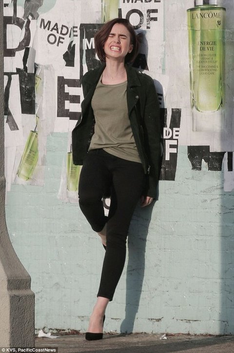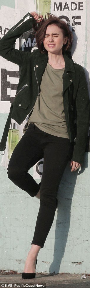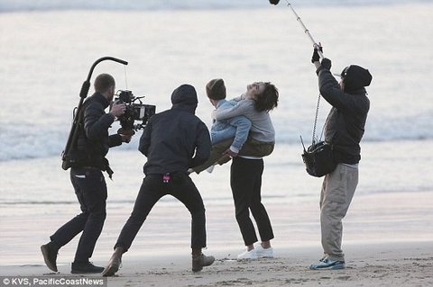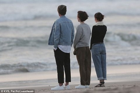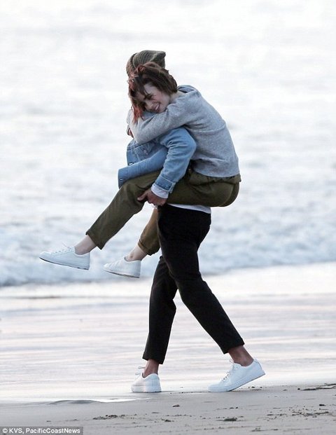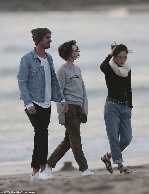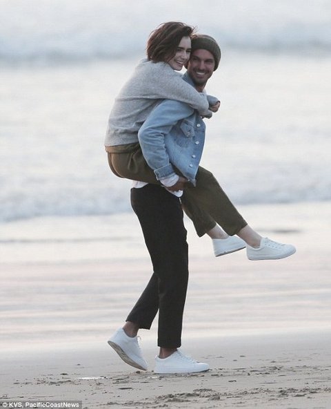 바닷가에서 꽁냥꽁냥 분위기 만들어 내고 있는 릴리 콜린스