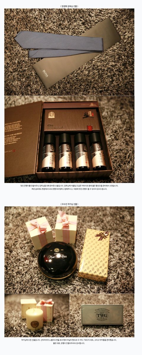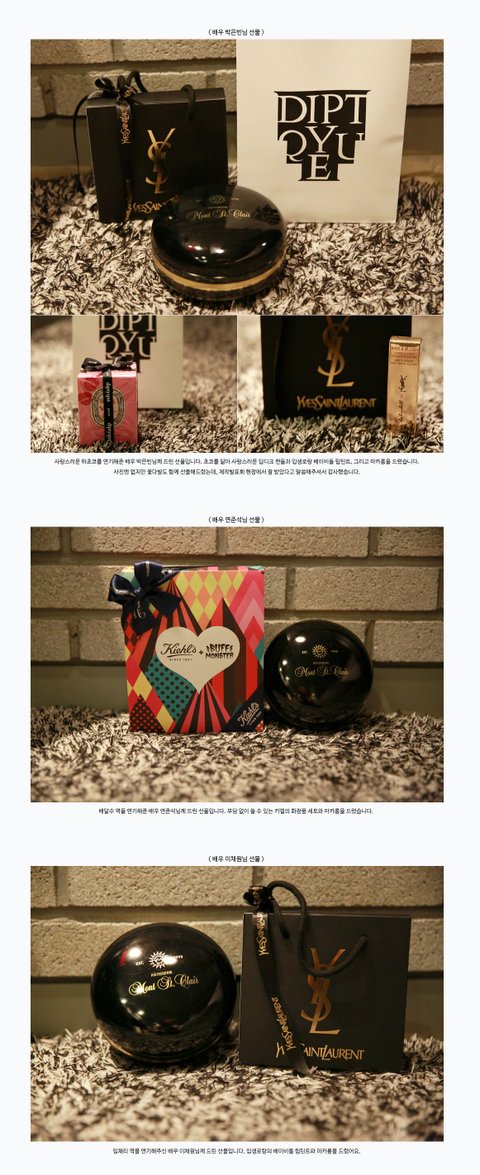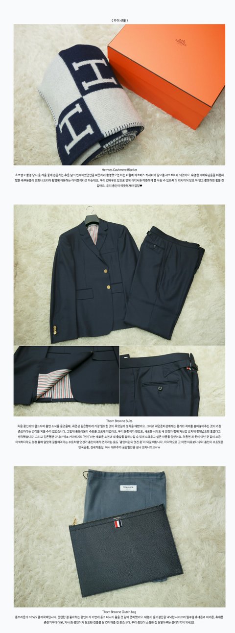 우리 은행이 정성 가득한 서포트 짱이다 빈티지 와인까지 세심하게 준비했어 에르메스 캐시미어담요에 톰브라운 랑방 페라가모 멋져 그날 초코뱅크 제작발표회에 갔던 감독 배우 기자 사회자분까지 모든 분들 선물 다 드렸구나 꼼꼼하게 정말 잘하셨다 읽기 좀 힘든데 코멘트에도 애정이 듬뿍 담겨있어 고생하셨어요
