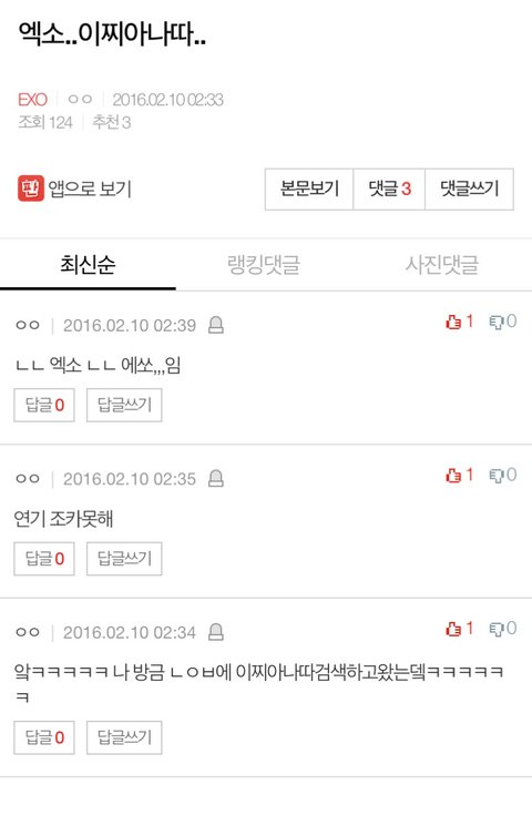 +내 뜻은 그게 아니라 제목 밑 작은글자=댓글 내용이잖아