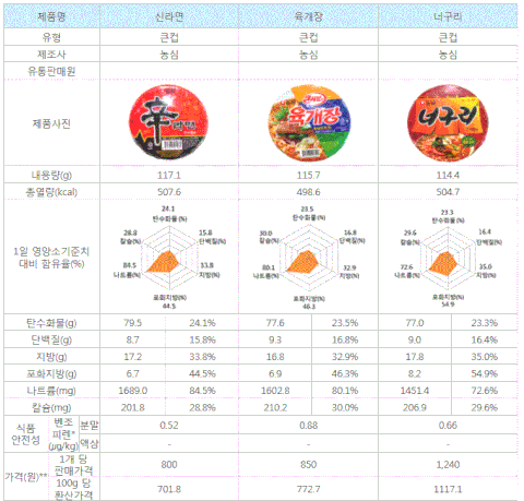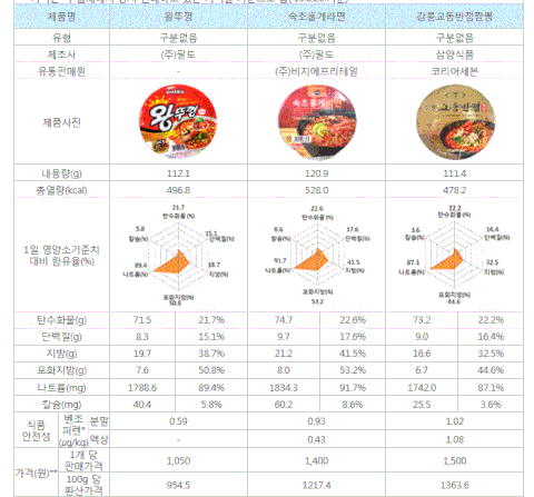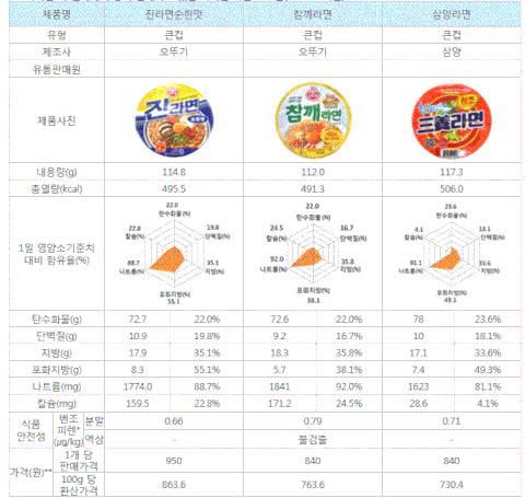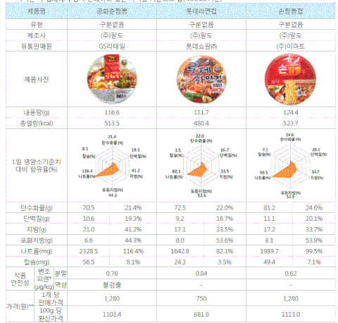 ‘너구리’가 가장 적게, ‘공화춘짬뽕’이 가장 많이 함유!