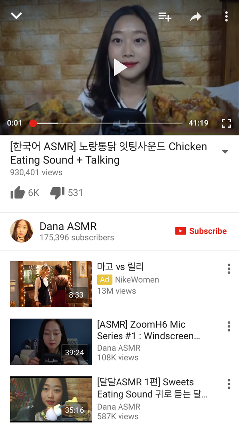 오늘들을 asmr 정함!