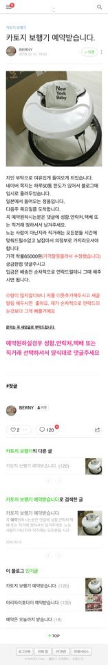 지인의 부탁으로 일본에서 보행기를 가져오는데, 10개 정도 더 가져오려고하니 필요한 분은 댓글 달아달라는 내용이었습니다. (나중에는 판매글이 블로그로 이동되었습니다.)
