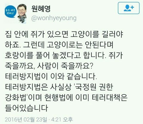 그저 집권을 위해 북한!! 얘들아, 북한 무섭지 않니?! 이러면서 북한을 내세우고 이 법안을 날치기식으로 통과시키려 하고 있지.