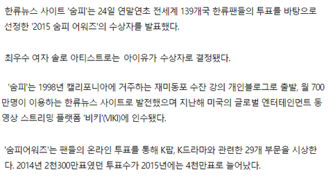 +) 연말연초 약 2주간 전세계 139개국 한류팬들이 온라인으로 투표에 참여한다.