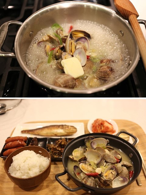 조개술찜은 끝에 버터를 크게 한스푼 넣어주는게 포인트인데