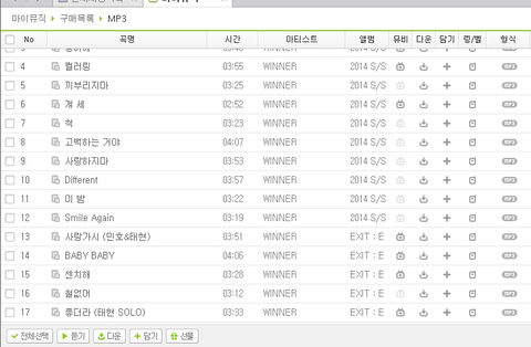 엠피쓰리 다운로드 이용권 남은 곡들 다 위너분들 곡으로 사는 정도?!!