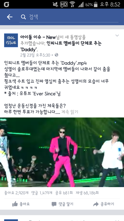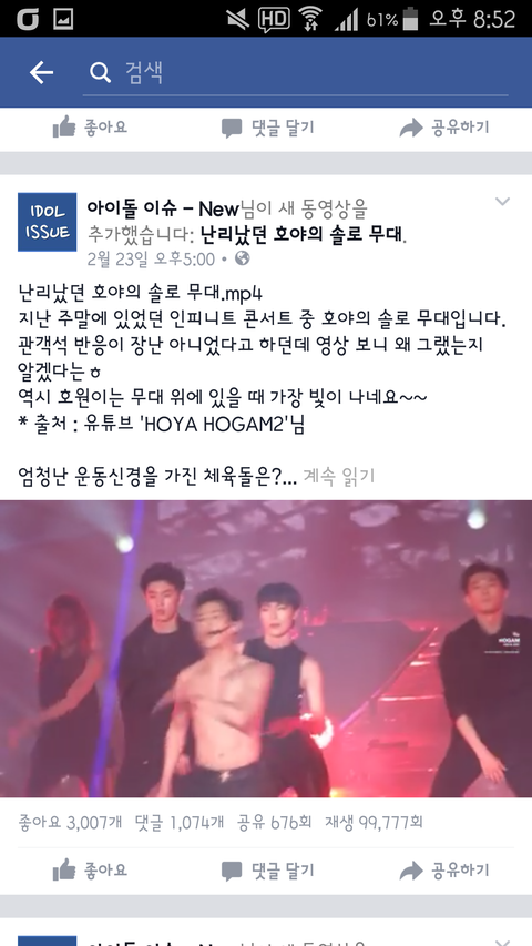 얼굴책에 아이돌이슈라는 페이지에