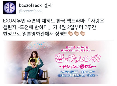 시우민 웹드 일본영화관에서 상영한대