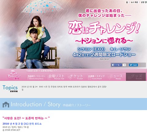 시우민 웹드라마 일본상영관 정보