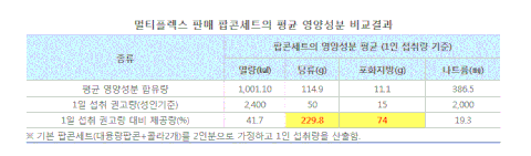 1인당 1인 기준(성인남성기준) 권장량과 비교했을때