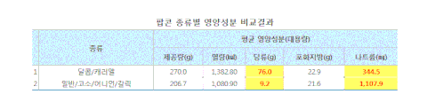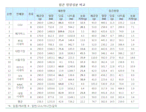 *조사대상: 팝콘세트 (대용량팝콘 + 콜라900ml 2개) 18개, 중간용량 팝콘 18개