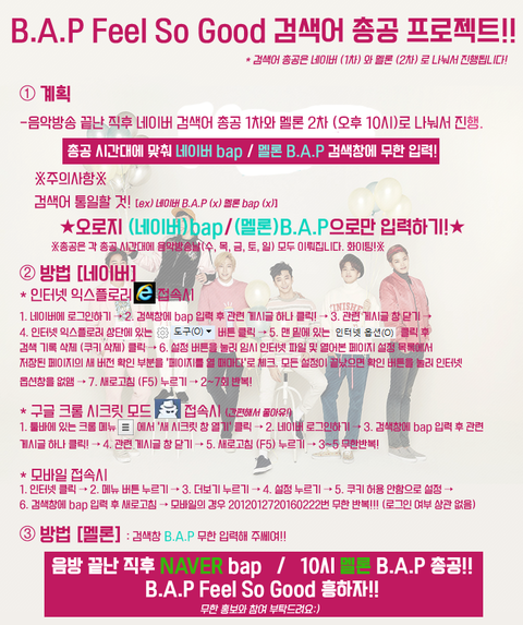모든 음악방송후 네이버에 bap 검색어 총공하면 되고