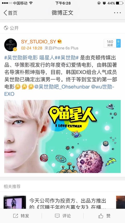 세훈이 중국 영화 찍는거 맞음?