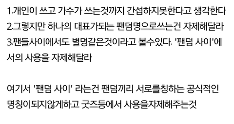 이렇게 아미 방탄소년단 사이에서 많은 추억이 담긴 애칭을 업텐션분들 팬클럽 이름으로 정해지는 것은 아미들 측에서 불편할 수 있다는 점 고려해주셨으면 합니다. 서로를 부르는 호칭이 다른 가수분의 팬덤명이 된다면 아미를 부르는 또 다른 소중한 애칭이 한순간에 사라지는 것이나 같은 상황입니다.